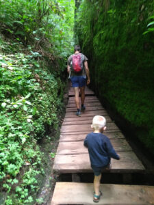 Ook met kleine kinderen is deze wandeling prima te doen vanwege de vele bruggetjes en trappetjes. Ze renden elke keer weer vooruit om te kunnen kijken wat ons nu weer te wachten stond.