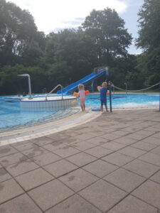 Daarnaast kun je op vertoon van een pasje gebruik maken van het naastgelegen openluchtzwembad. Hier zijn zwemattributen te leen en er is een waterglijbaan. Ook is er een 50m bad.