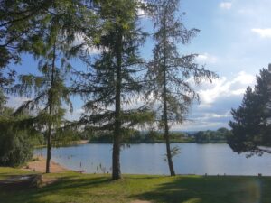 De camping ligt aan een groot meer, waarop wij vanuit ons plekje een mooi uitzicht op hadden. Er is een groot zandstrand bij het meer en op de campingplekken zijn veel bomen die voor schaduw zorgen. Voor zonliefhebbers zijn er ook genoeg plekjes in de zon.